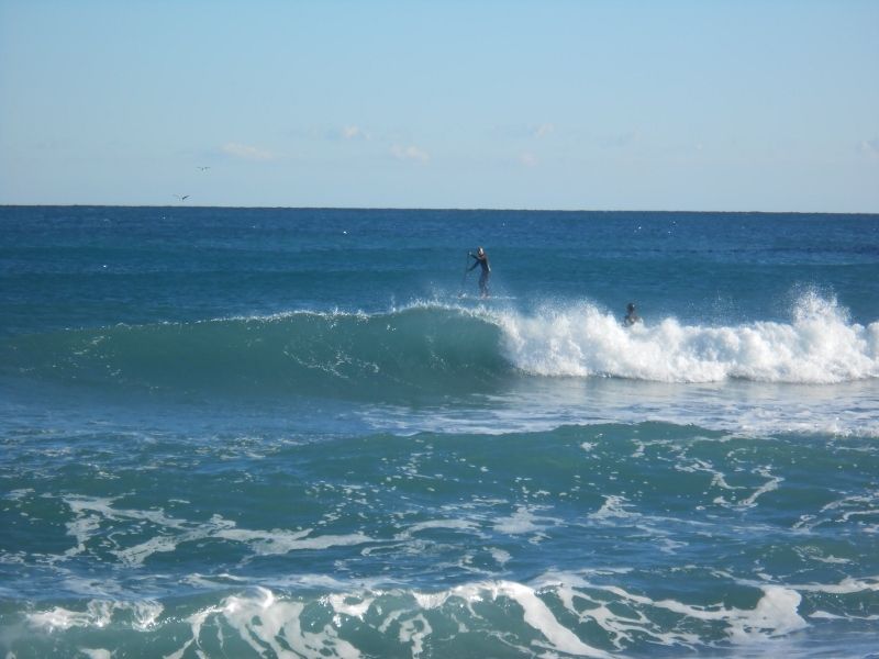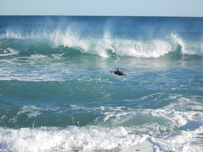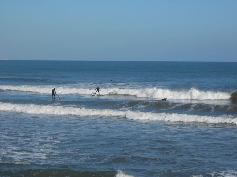 Le lendemain, la météo est toujours défavorable, en revanche, des vagues énormes appellent Lionel pour aller surfer ! Direction la plage et Lionel se fait une bonne petite session de surf en paddle, il est ravi ! ça vaut bien une petite gaufre au Nutella et des petits tapas le soir pour fêter notre dernier jour en ville avant « la » reprise de la mer !