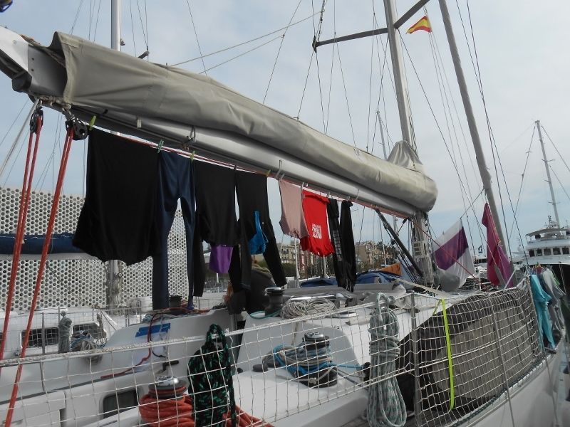 Nous en profitons également pour faire tourner une lessive… et ça tourne au ridicule…en effet, la marina dans laquelle nous nous trouvons est flambant neuve et tout n’est pas encore opérationnel… D’ailleurs, tout le port est victime d’une coupure de courant pendant presque 12 heures… du coup, nous trimbalons nos trois cabans de linge sale à travers toute la marina dans l’espoir de trouver une machine à laver qui fonctionne… Bien non, va falloir aller en ville, mais d’abord, nous devons impérativement trouver un ship afin d’acheter un adaptateur de prise de quai espagnol… On promène nos sacs dans la ville et on finit par trouver le fameux magasin, juste à côté de la laverie ! L’étendage est assez rigolo sur le bateau, au milieu du port… ça fait un peu « gitans » au milieu des installations flambantes et des gros yachts !! pas grave, la bonne brise aura vite fait de tout sécher ! et nous profitons de l’après midi pour aller visiter l’aquarium, en attendant de découvrir tous ces poissons en vrai, dans l’océan !